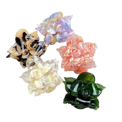 מפעל bsci הנמכר ביותר אצטט אופנתי עלה פרח שיער טופר קליפ פרח שיער אביזרים לשיער נשים